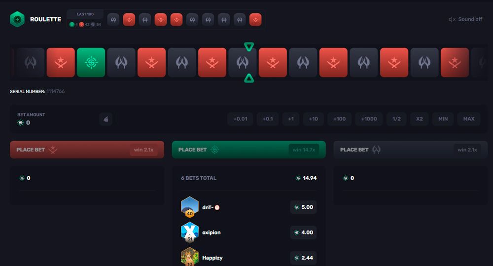 1. Рулетка на три цвета: Простой и захватывающий режим, где ставки делаются на цвета: красный, черный или зеленый. 2. Джекпот: Участвуйте в битве за крупные призы, соревнуясь с другими игроками. Чем больше вы ставите, тем выше шансы на победу. 3. Кости: Бросьте кости и посмотрите, насколько удачливы ваши броски. 4. Coinflip: Проводите быстрые дуэли с другими игроками, угадывая сторону монеты. 5. Кейсы: Открывайте кейсы и выигрывайте редкие и эпические скины для вашего инвентаря. 6. Case Battles: Соревнуйтесь в битвах кейсов с другими игроками, чтобы выиграть лучшие скины.