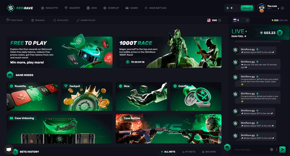 SkinRave.gg предоставляет уникальную платформу для игроков, желающих обогатить свою коллекцию скинов и испытать удачу в захватывающих играх, а использовав наш промокод для SkinRave - "DATAGAME" вы получите $0.50 на баланс сайта.